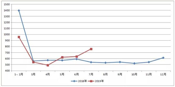 按每月规模企业统计:1-7月中国规模以上工业企业塑料制品产量累计为3998.8万吨,同比下降5.3%;其中,7月份产量为758万吨,环比增长19.73%,同比增长40.89%。