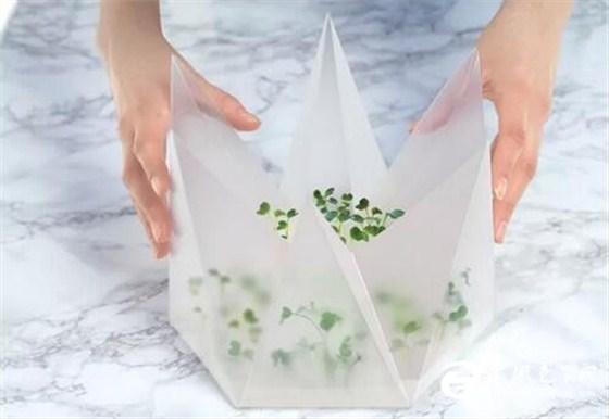 瑞典设计工作室TomorrowMachine和位于柏林的室内养殖初创公司INFARM联合研发了一种前所未有的室内养殖工具包,使得人人都可以在家培育微型花园。工具包包含一张可重复使用且可再生的塑料片,将其折叠之后便可形成一个独立的温室。