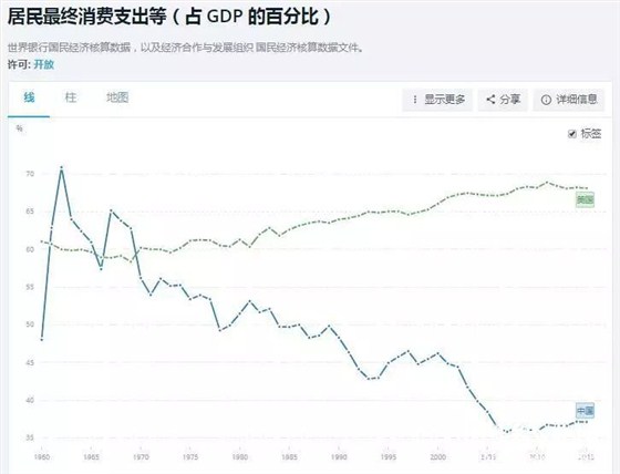 很不幸,过去十年时间,国进民退、人民币外升内贬、疯狂的房地产和铁公基、新四座大山压顶等,我们都能看到国家投资碾压大众消费的影子。