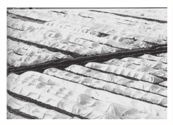 其中,农膜是聚乙烯薄膜用途中的大户。由于塑料薄膜具有透光率高、保温保湿性能好、成本低等优点,用它做的日光温室或拱棚,可以人工地造成适于农作物生长的“小气候”,达到农产品增产增收的目的。农用覆盖材料有地膜、棚膜。地膜(栽培膜)以单层低密度聚乙烯为主,要求它连续覆盖150天以上还能成大片状回收。一般厚度在0.005~0.006毫米之间的膜,每亩用量3千克;若厚度在0.008毫米,则每亩用量4千克。塑料棚膜有普通型、耐候型、无滴型、保温型等,要求扣棚300天以上不发生自然破坏。生产棚膜的主要原料是聚乙烯、聚氯乙烯或EVA,其中聚乙烯的消耗量最大,其产品有聚乙烯棚膜、聚乙烯复合功能棚膜,还有黑色、银灰色、紫色、绿色等各种聚乙烯有色棚膜。