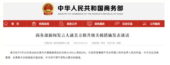 近日中美之间的贸易拉锯战火了。先是美国宣布5月10日起,对从中国进口的2000亿美元清单商品加征的关税税率由10%提高到25%。