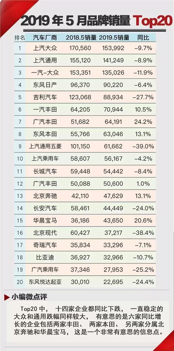 据了解,2019年5月份乘用车市场销量实现154.2万辆,较去年同期185.5万辆下降16.9%。自此,中国车市已经是罕见地12连跌,而且今年前五个月的累计销量跌幅还在继续扩大。