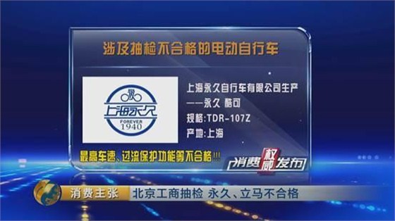 其中,上海永久自行车有限公司生产的永久酷可,最高车速、过流保护功能等不合格。