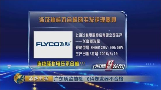 其中,上海飞科电器股份有限公司生产的飞科卷发器,连续骚扰电压不合格。