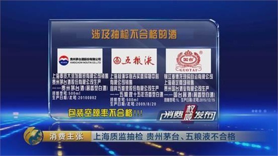 其中,上海奉贤大润发商贸有限公司销售的贵州茅台酒、上海杨浦华联吉买盛购物中心有限公司销售的五粮液十五年浓香型白酒、锦江麦德龙现购自运有限公司上海嘉定商场销售的国台酱酒均被检出包装空隙率不合格。