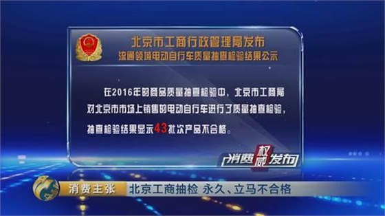 日前,北京市工商局对电动自行车进行了抽检,43批次产品不合格。