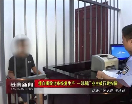 在县拘留所,印刷厂业主对擅自撕毁封条的行为懊悔不已:“因为一批货赶得急,就想着把剩下的料做完,没想到还会来检查。这个违法成本很高,得不偿失。”