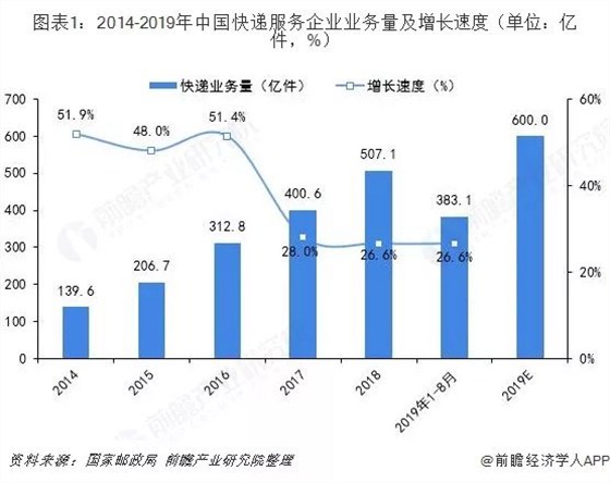 而且,更可喜的是,中国电商行业仍然处于飞速发展期。2017年,中国快递业务量突破400亿件;2018年,中国快递业务量突破500亿件;2019年快递业务量又突破600亿件。据快递业“十三五”发展指标,2020年我国的快递量将有望达到750亿件,人均快件从2000年的0.01件增长到2020年的约50件。
